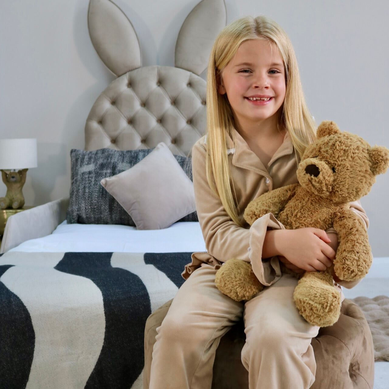 - Elegant curved teddy fabric headboard