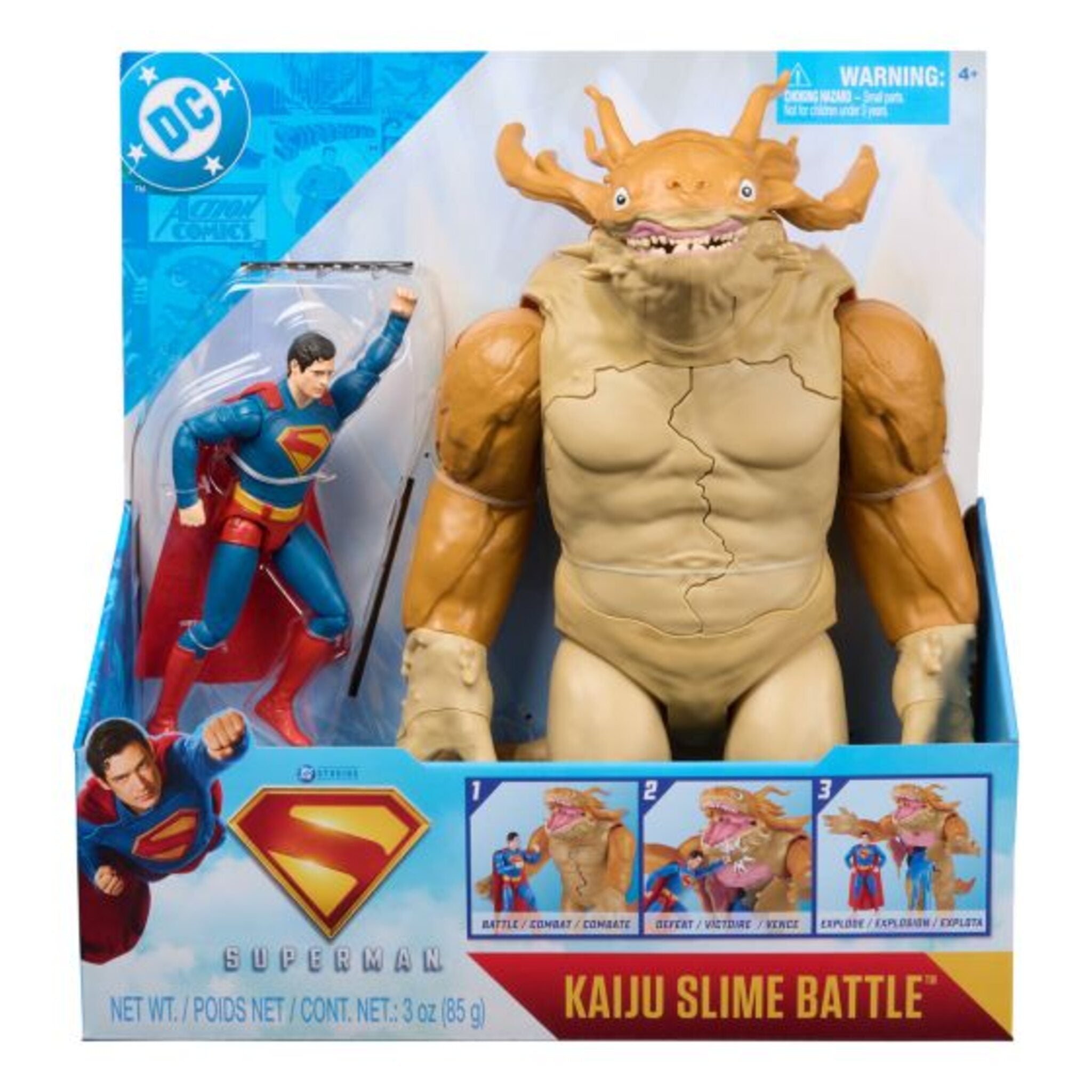 Superman is ready with powerful punching action, while the ferocious Kaiju strikes back with claw-swiping attacks. When the Kaiju is defeated, kids can unleash a dramatic blue slime explosion, adding a surprising twist that makes every victory unforgettable.