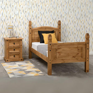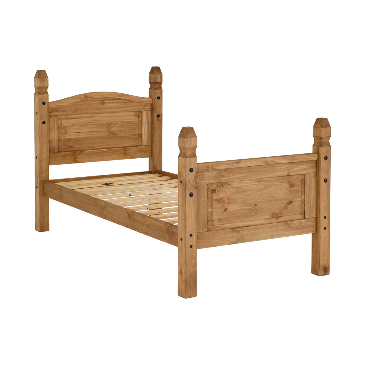 Corona 3' Single Bed - High Foot End in Distressed Waxed Pine, A stylish– classic design with timeless appeal that will fit in with almost any home décor. The bed features a stunning rustic solid wood design that compliments any environment, ensuring you sleep in style as well as comfort.