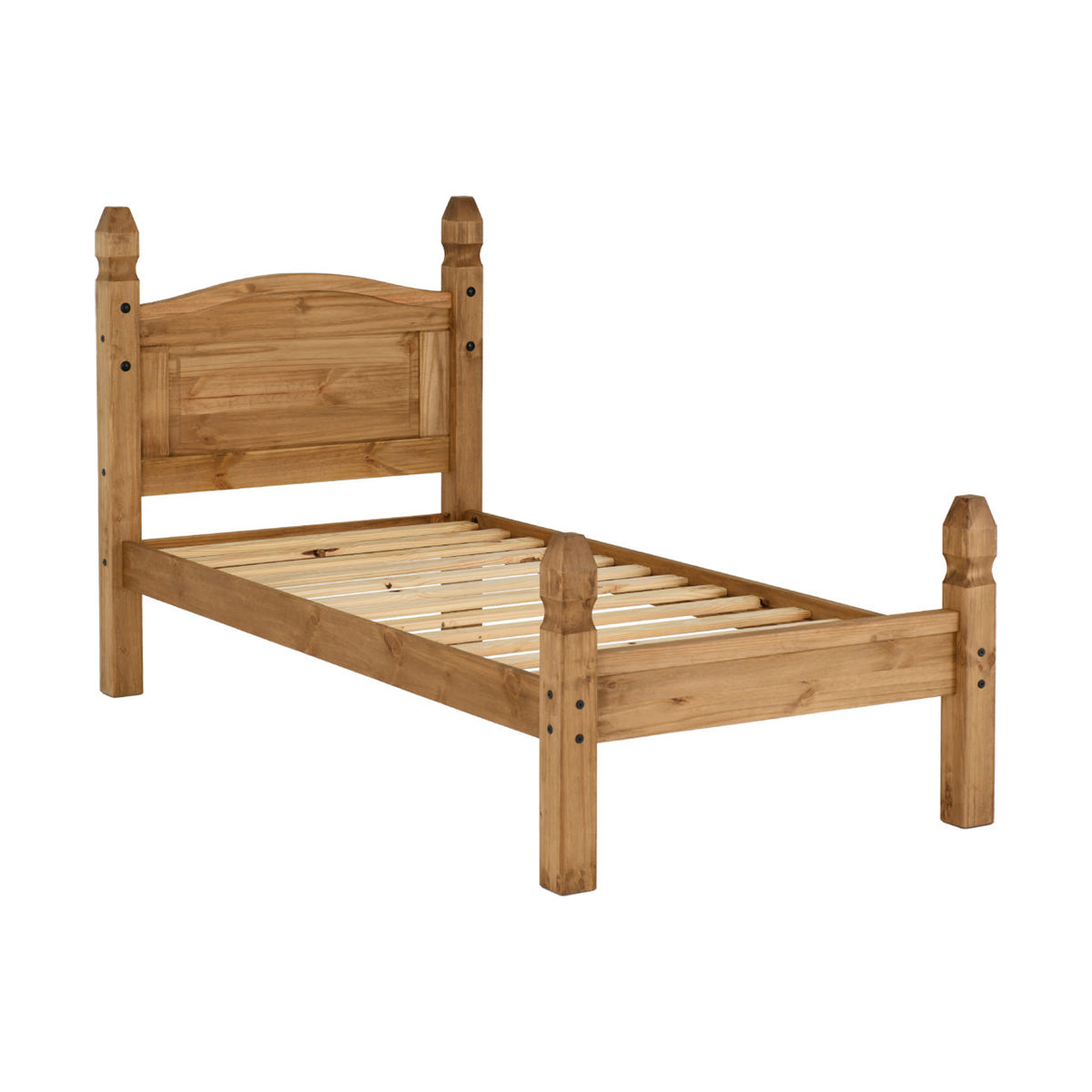 The Corona Mexican single bed is a traditional style bed that has an authentic ethnic appeal. The bed features carved wooden posts on both the head and footboard to give it extra charm. This bed is perfect for the traditional style country home.