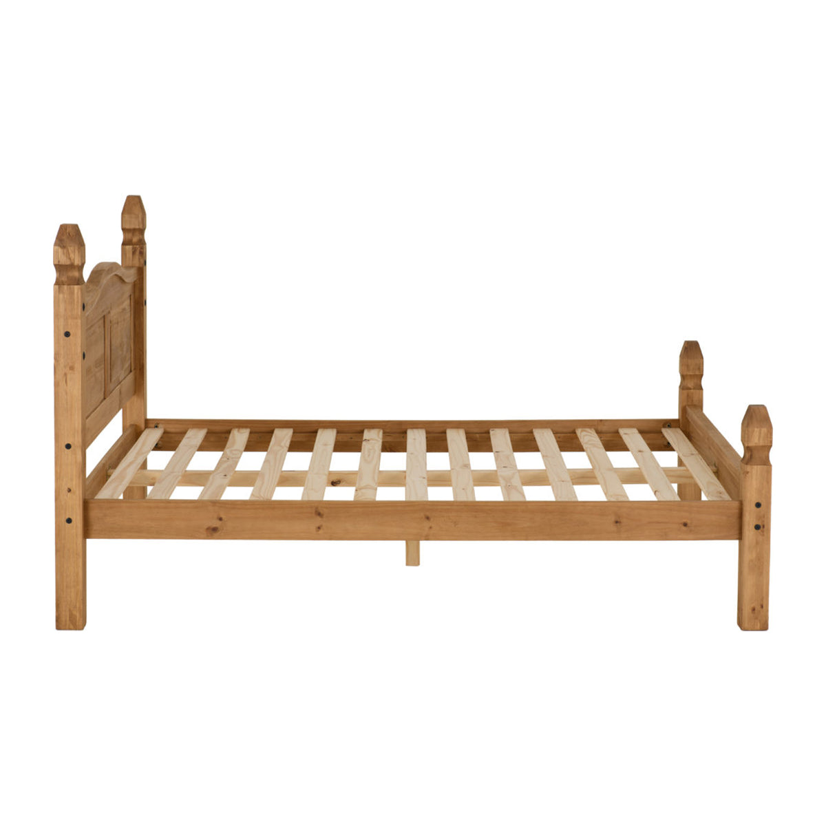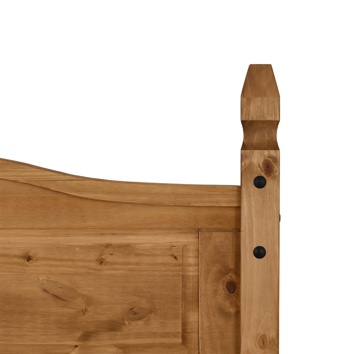 Styled with a Mexican influence this Corona 4'6" Low End Bed has a warm, welcoming appearance, enhanced by the beautiful wood grain of the solid pine. Touches of Black Metal strongly contrast the natural tones of the pine, enforcing the rustic look.