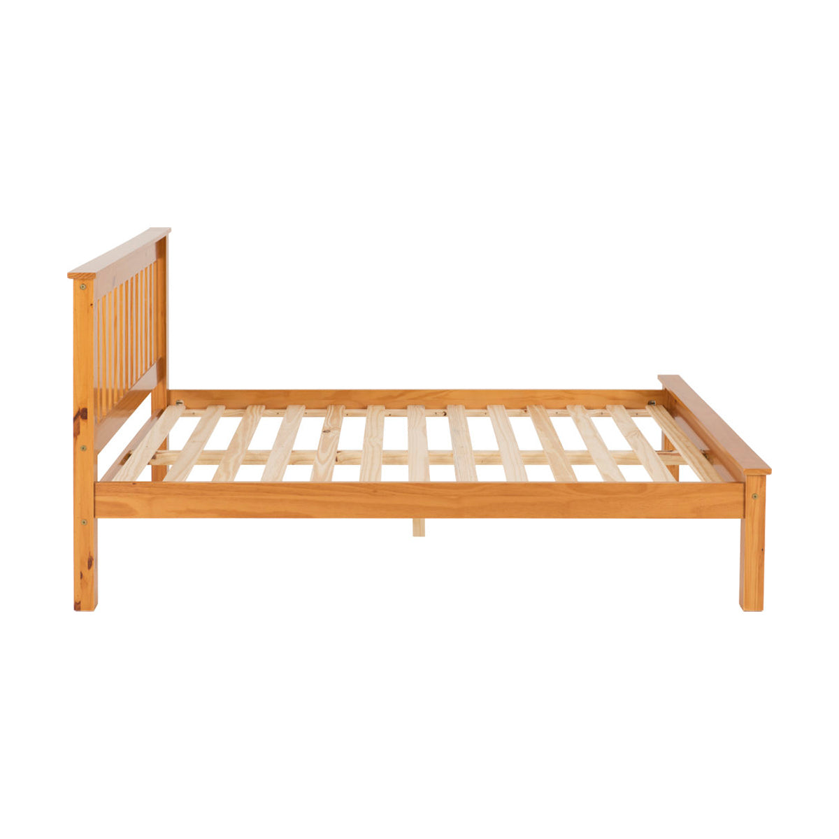 This Monaco 4’6″ Lowend Bed Frame is made from Solid wood and is Constructed robustly. With this solid frame and natural wood finish this bed frame is sure to stand the test of time. Offers a comfortable and strong slatted base to support your mattress and ensure a great nights sleep.