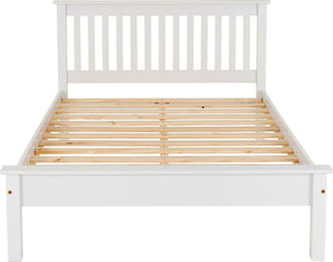 This Monaco 4’6″ Lowend Bed Frame is made from Solid wood and is Constructed robustly. With this solid frame and natural wood finish this bed frame is sure to stand the test of time. Offers a comfortable and strong slatted base to support your mattress and ensure a great nights sleep.