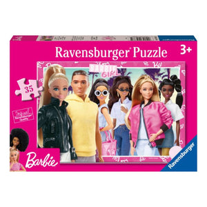Teamwork makes the dream work! This bright and vibrant 35-piece jigsaw puzzle celebrates Barbie, Ken, and their friends, showcasing their love for fashion while promoting inclusivity and diversity. Together really is the best place to be. A perfect activity for young Barbie fans, this puzzle encourages concentration, creativity, and fun.