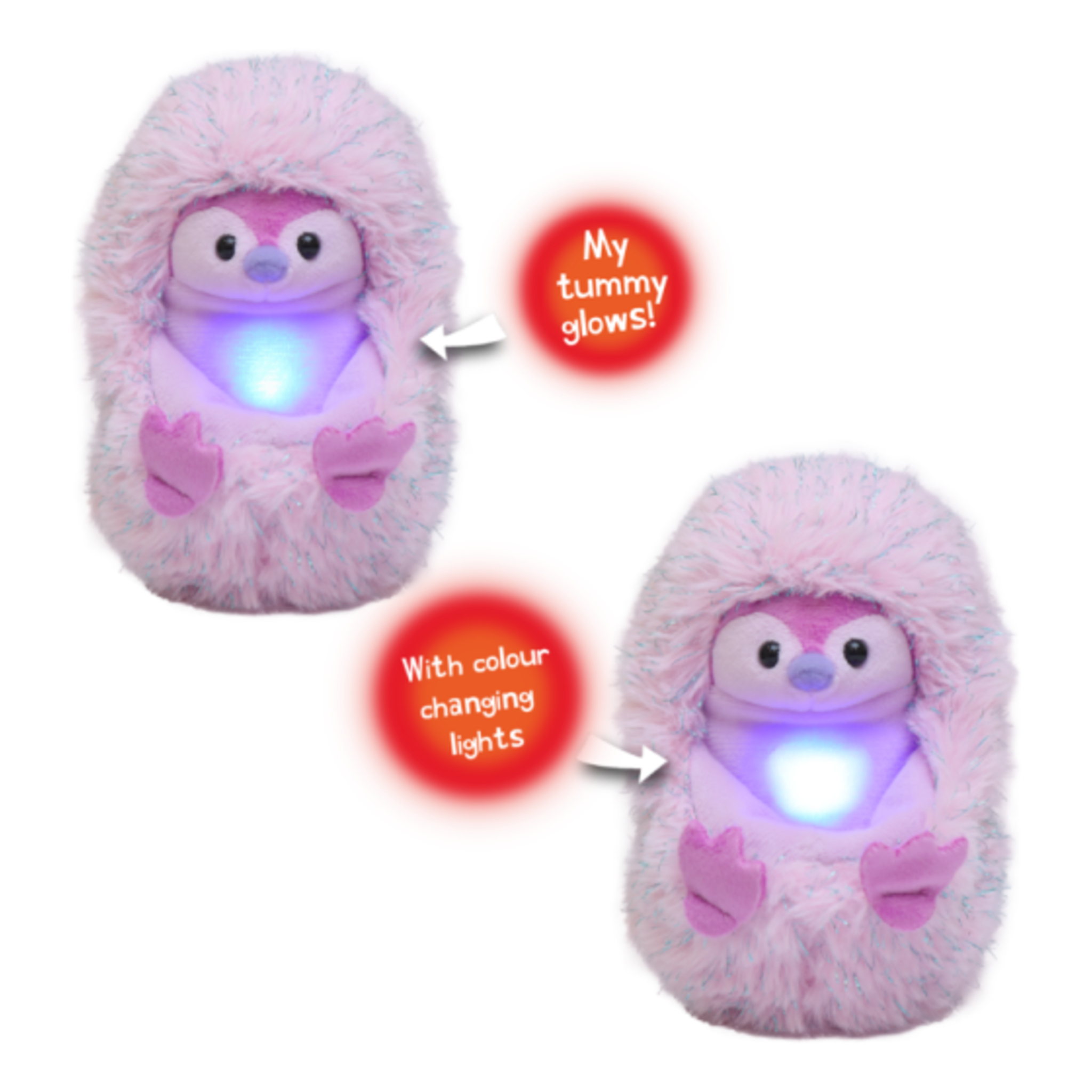 Bring home the magic of the Arctic with Pip the Penguin, the adorable interactive Curlimal who loves to play and snuggle! Soft, cuddly, and full of personality, Pip responds with giggles, noises, and sweet phrases, making playtime engaging and full of fun. With over 50 sounds and reactions, she encourages little ones to interact, recognise patterns, and enjoy imaginative play. Rub Pip’s nose to warm her up and watch her tummy glow with a magical light — she’s always ready to spread joy and teach nurturing behaviour.