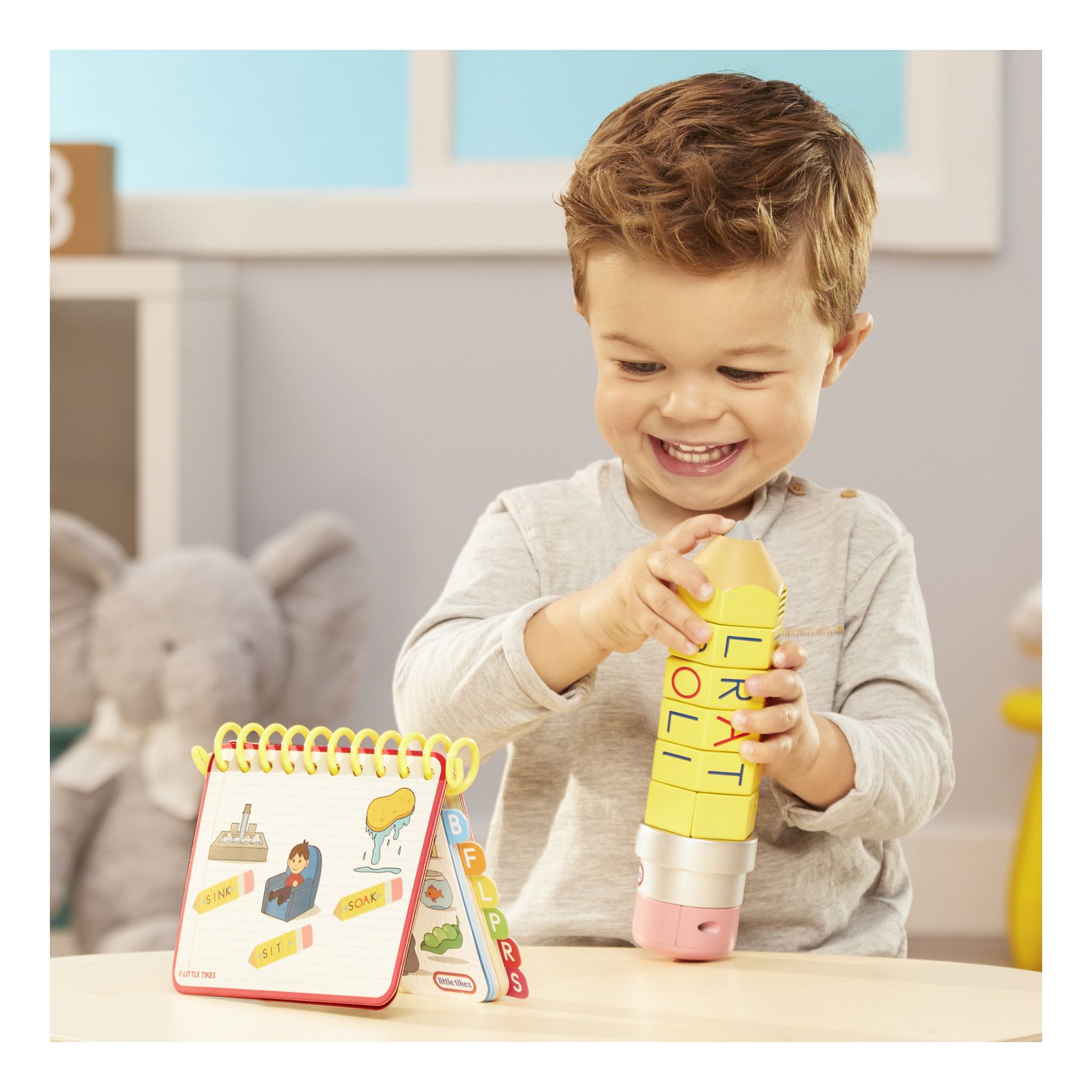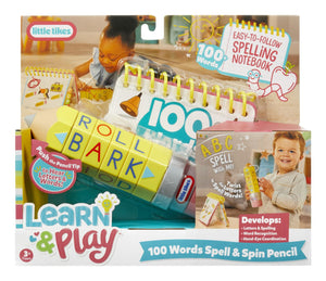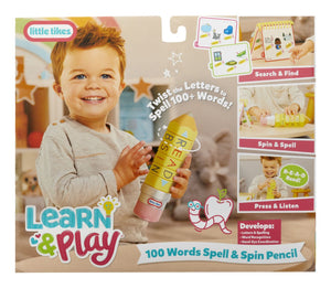 The hands-on and interactive Little Tikes Learn & Play™ 100 Words Spell & Spin Pencil allows children to turn letters to spell 100 different words. Develop vocabulary skills while searching the easy-to-follow spelling notebook for words to spell. After selecting a word, press the pencil tip to hear the letters, the word pronounced, and a corresponding sound effect. The 100 Words Spell & Spin Pencil is a great way to start girls and boys ages 3+ on an educational, spelling adventure.