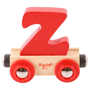 Bigjigs Rail Name carriages are loaded with a brightly coloured wooden letter or number. Each letter or number is removable and can be interchanged with other wagons and carriages in your wooden train set. The Bigjigs Rail Name range is ideal to personalise a Bigjigs Rail network, or as a special newborn, christening or birthday gift.