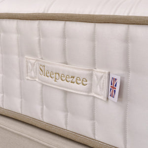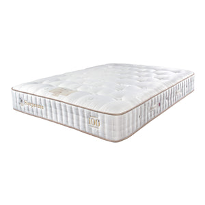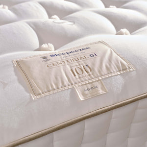The SleepEezee Centurial 01 Mattress features natural fillings of 100% British wool and Alpaca wool, offering medium or firm support, temperature regulation, and night-long comfort.