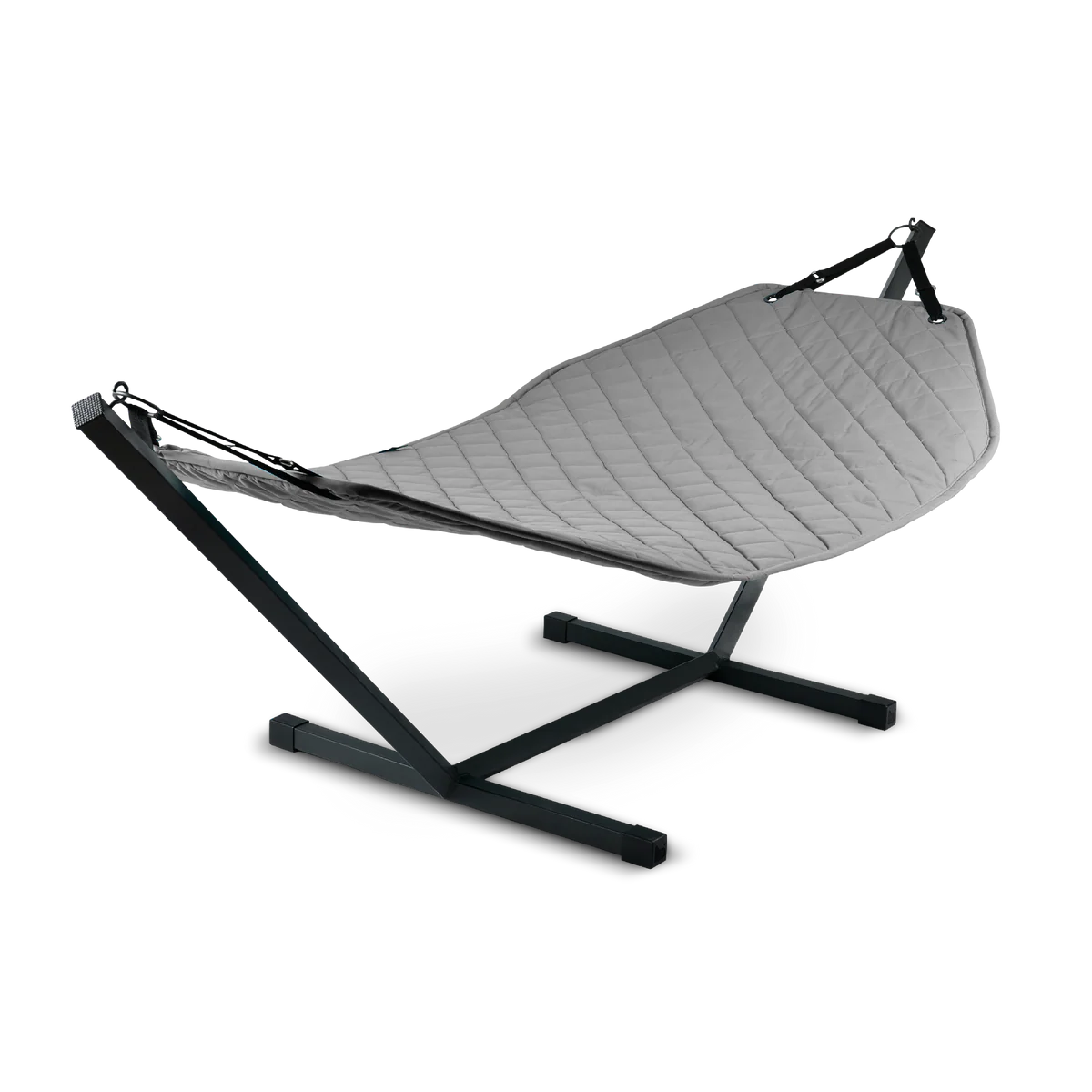 Who doesn’t love the thought of drifting asleep on an ever-so-gently swaying hammock? We certainly do. That’s why we applied our legendary bean bag know-how to creating this sumptuous relaxation piece. It’s crafted from our super-soft yet durable quilted fabric. And supported by an ultra-stable base in lightweight tubular steel that’s easily erected and neatly folded away in no time.