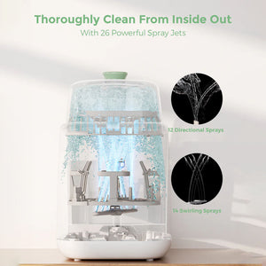 Ultimate Solution for Hands-free Cleaning: Automatically washes, sterilizer, and dries baby bottles, pump parts, baby tableware, and more, saving you precious time to spend with your family.