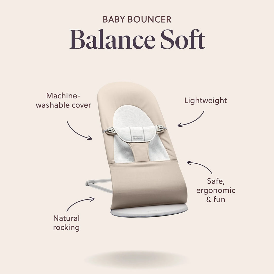 Bouncer Balance Soft is a lightweight and handy baby bouncer with natural rocking that makes life with young children easier and more enjoyable.