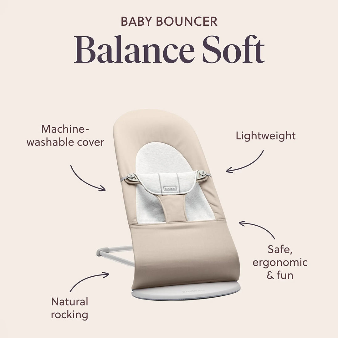 Bouncer Balance Soft is a lightweight and handy baby bouncer with natural rocking that makes life with young children easier and more enjoyable.