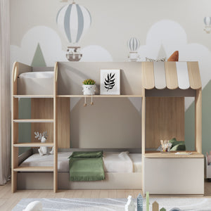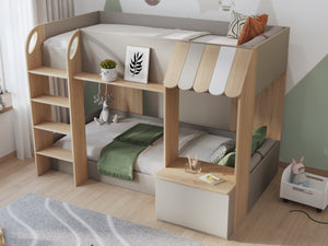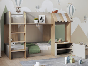 Spark your child's dreams with our enchanting bunk bed. This delightful bed isn't just for sleeping; it's a launchpad for imagination and a haven for cosy comfort. The playful shop-front design brings a touch of whimsy, while clever integrated storage keeps everything tidy. Watch your little one's creativity blossom in this charming and practical space.