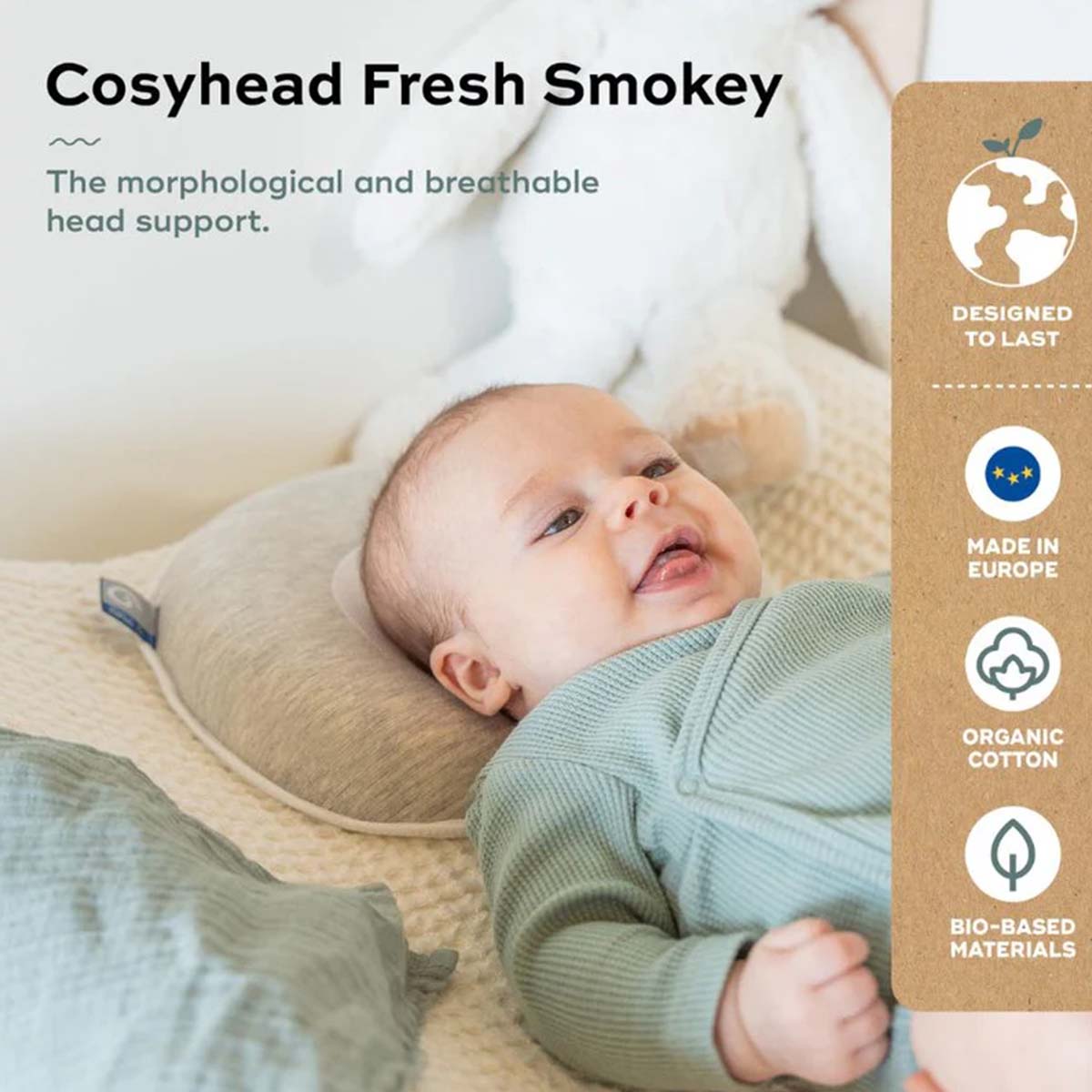 The Babymoov Cosyhead Fresh is an ergonomic head support designed to prevent flat head syndrome (plagiocephaly) in babies from birth to 3 months old.