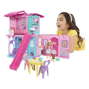 Welcome to Chelsea's Pop-Up dollhouse, where tiny home fun transforms into a big adventure! This foldable playset reveals over five play areas, letting Chelsea doll and her pet pup explore living room fun, cooking in the kitchen, snoozing in the bedroom, racing down the slide, and even bathroom moments. Fully furnished with furniture and accessories, kids can create endless imaginative stories in Chelsea’s home sweet home.