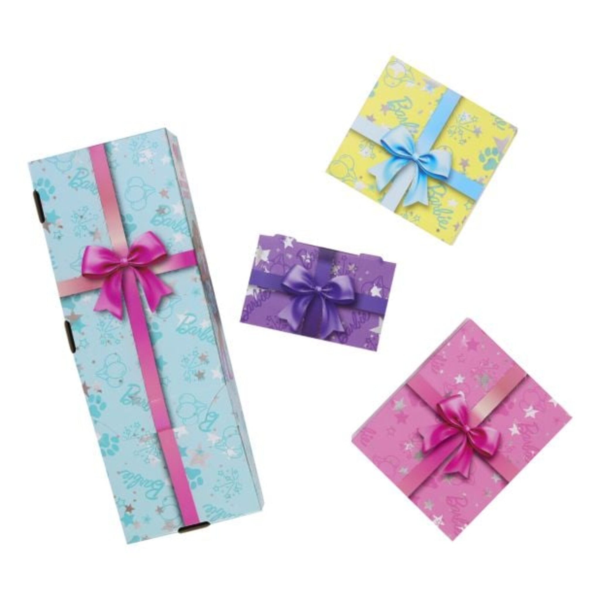 Celebrate in style with the Barbie Party Unboxed Pet Birthday collection! Each doll delivers 10 exciting surprises in gift box-inspired packaging, making unboxing a thrilling experience. Discover adorable pets with dress-up accessories, party fashions, and cake decorating tools to throw the ultimate pet birthday party. Kids can use the included mix-and-make dough, mold tray, and tools to decorate the two-tier birthday cake, while the color-change features on the dolls and pets add even more fun surprises. Collect all three dolls—Birthday Bows (Blonde), Shimmerin’ Hearts (Brunette), and Party Stars (Blue)—to keep the party going!