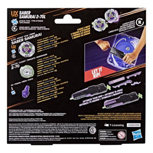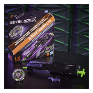 Take control of the arena with the Beyblade X Victory Grip Launcher Set! This set includes a right-spin launcher with a 10"" (25 cm) ripcord and customizable rubber grips for maximum comfort and precision. Launch the included Saber Samurai 2-70L Right-Spin Attack Type top, designed to work with the X-Celerator Gear System for supercharged battles.