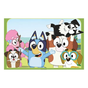 Bring the fun of Bluey to puzzle time with this 2-pack of 12-piece jigsaw puzzles! Each puzzle features exciting adventures with Bluey, Bingo, Mum, and Dad, illustrated in bright, colourful designs that capture Bluey’s energy and lovable spirit.
