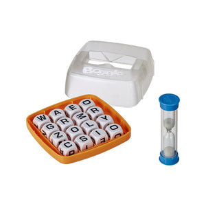 Earn points by spotting words your friends don’t before time runs out. Shake the grid to mix up the letter cubes. Then lift the lid and flip the timer. Players have 90 seconds to write down as many words as they can find on the grid before time is up. At the end of the round, score the words. If two or more players find the same word, that word doesn’t count. The player with the highest score wins. Game comes in an easy to store travel case for both timer and dice.