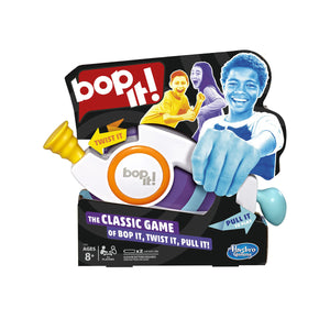For years players have loved the simple and exciting "Bop It, Twist It, Pull It" actions featured in this iconic electronic Bop It! game. Players can face-off in a multiplayer game with the pass and play feature or beat their best in solo mode. The game unit has 3 different volume settings and announces the high score at the start of each solo game. It's a great game to bring to parties and get-togethers with family and friends.