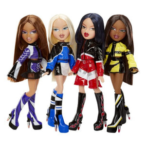 Get ready for fashion in the fast lane! Bratz is back with Scorchin’ styles that are race-day ready and totally bold. Cloe cruises in a cobalt blue racing jacket paired with a matching leather mini skirt, giving her a sleek, moto-inspired look. She completes her outfit with platform boots featuring a lipstick-shaped heel and chic sunglasses. Her soft-glam makeup and long, blunt-cut hairstyle perfectly complement her high-speed style.