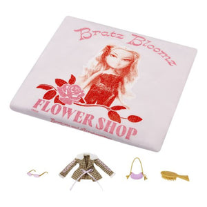 The Bratz are back with new STYLIN’ looks, now letting you share their fashion passion! Yasmin comes with a matching graphic tee you can customize to match your own style. She’s dressed in a cropped tank layered under a houndstooth plaid coat, paired with a chic midi skirt, heeled oxfords, a matching handbag, and stylish shades. Her long hair is accented with a pink bow, and her pastel-glam makeup is finished with an icy pink lip.