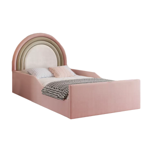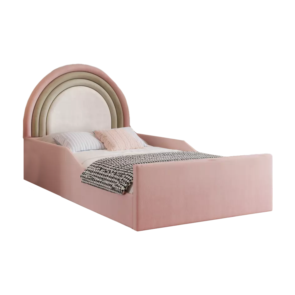 Introducing our Bubblegum Kids Bed; where comfort meets creativity! Designed with a unique curved headboard, this bed adds a touch of whimsy to any child's bedroom.