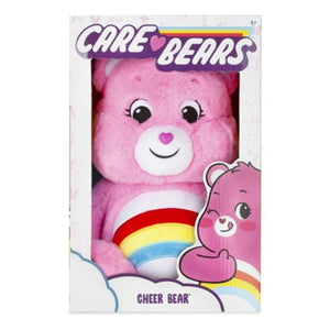 Cheer Bear is a joyful Care Bear who helps everyone see the bright side of life! This 35cm plush features a soft, huggable material and a colorful rainbow belly badge representing hope and happiness. Perfect for cuddles, imaginative play, or gifting to Care Bears fans aged 3+.
