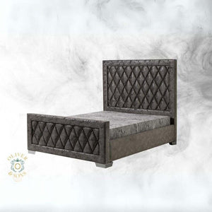 The Diamond Bed Frame is available in various colours in plush fabric.