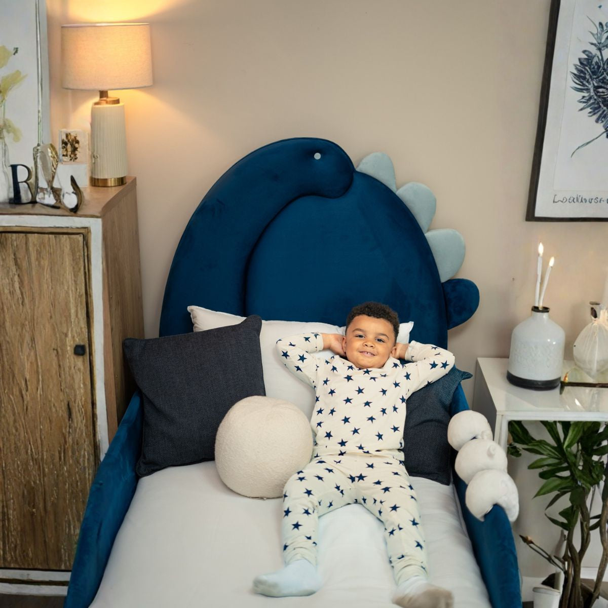 Let your little explorer experience prehistoric dreams with the Dino Rawr-zilla Kids Bed, featuring a fun and vibrant dinosaur-shaped headboard that will ignite their imagination. This exciting bed provides a comfortable and secure sleep space, perfect for young adventurers ready to roar into a night of peaceful slumber.