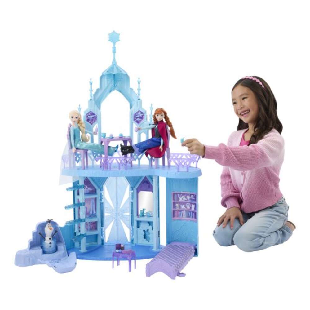 Bring the magic of Arendelle home with the Elsa Ice Castle Playset, inspired by Elsa’s iconic Ice Palace from Disney’s Frozen. Standing over 2.5 feet tall, this enchanting castle is designed for fashion-doll-sized adventures with 360° play and five interactive play areas. Kids can activate magical moments by pushing, pulling, or twisting snowflake icons to unlock surprises—including “creating” Olaf out of snow, just like in the movie! With more than 20 accessories, including furniture and pretend food, this playset lets kids re-create favorite Frozen moments or imagine brand-new adventures with Anna, Elsa, and friends.
