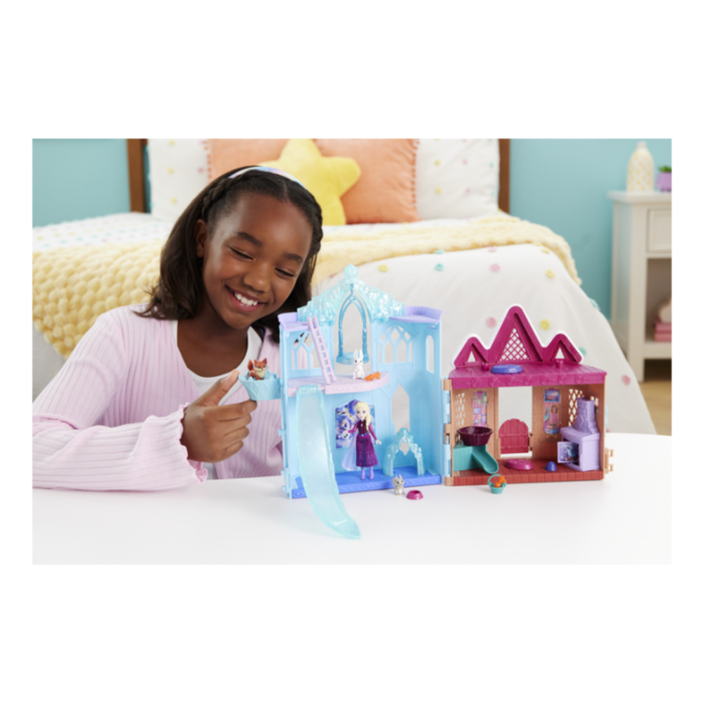 Step into a magical Winter Wonderland with the Disney Frozen Small Doll Animal Sanctuary Playset, where Elsa and her woodland friends await! Inspired by the Animals of Arendelle: Lost and Found short-form videos, this enchanting set opens to over a foot wide, revealing two imaginative play areas—a frosty outdoor playground and a cozy cabin retreat. With a 3.5-inch Elsa small doll, three adorable animal companions, and eight nurturing accessories, kids can care for their furry friends and create endless Frozen-inspired stories. Plus, the playset connects with other Disney Storytime Stackers for even more adventure!