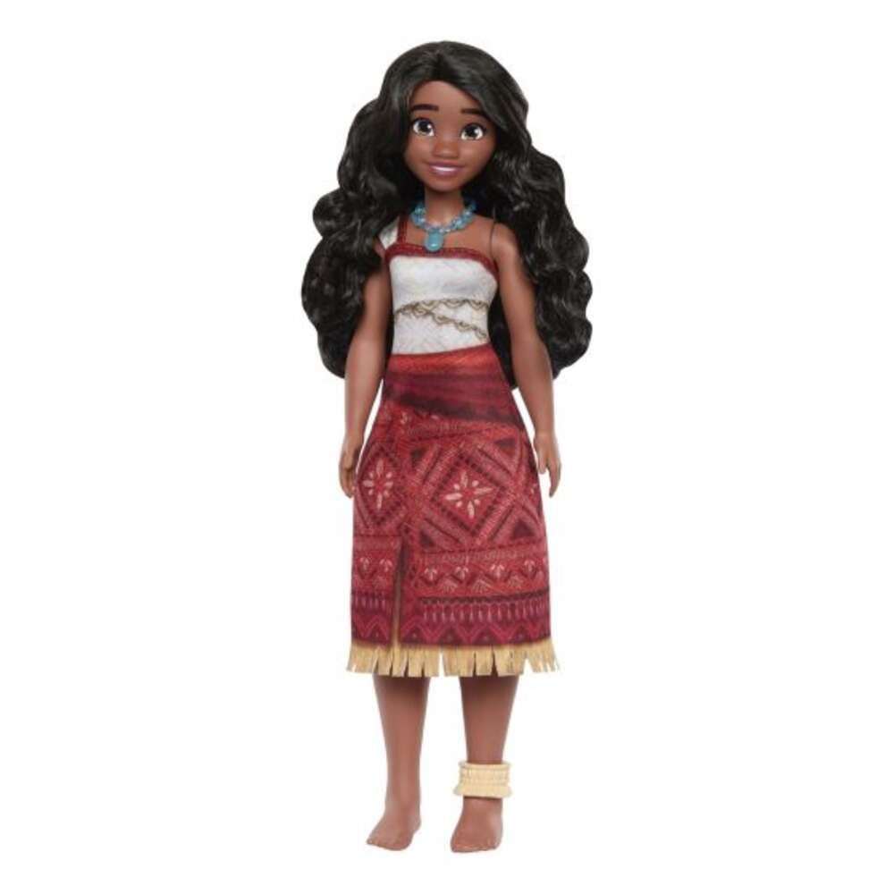 Inspired by Disney Moana 2, this fashion doll invites kids to imagine bold ocean voyages and exciting new adventures! Moana is dressed in her signature adventure outfit from the film, complete with necklace and anklet accessories. With long, wavy hair and poseable arms, head, and legs, this doll is ready to set sail on any journey. Pair her with Loto (sold separately), Moana’s brilliant engineer companion, for even more storytelling fun.
