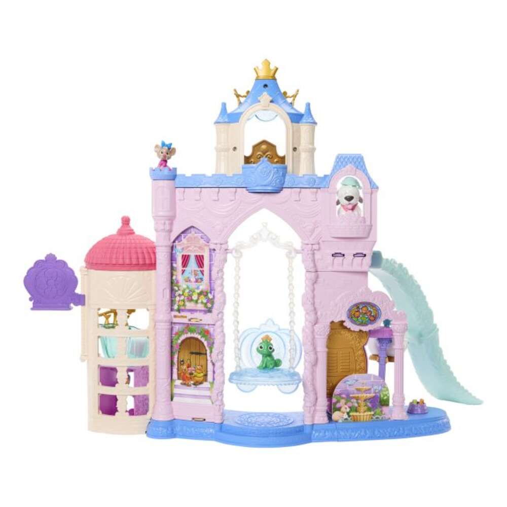 Bring Disney Princess friendship and fun to life with the Pet Palace Playset! Inspired by beloved Disney movies, this expansive playset measures over 2 ft / 65 cm wide and features seven Princess-inspired play areas. Includes three adorable animal figures—Perla the mouse (Cinderella), Max the dog (The Little Mermaid), and Pascal the chameleon (Tangled)—plus more than twenty furniture and accessory pieces for endless storytelling. Dolls not included. Colors and decorations may vary. Adult assembly required.