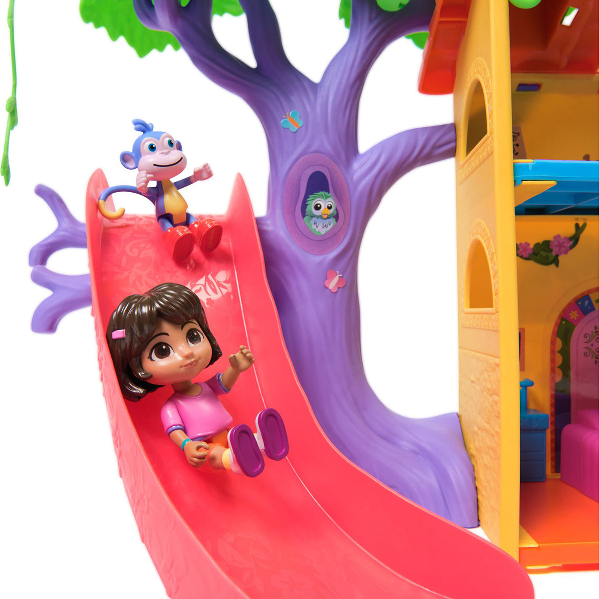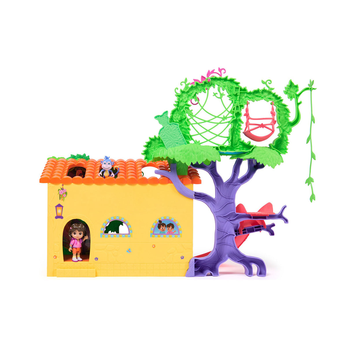 Outside, the figures can swing on the "Jungle Vine," cross the "Wobbly Bridge," and much more. Inside, explore multiple play areas, decorate with doll house furniture & activate sounds & bilingual phrases with the button in the living room! Step into the world of Dora, with toddler toys that will make magical birthday, Christmas, & holiday gifts for girls & boys that love pretend play toys, like dolls & accessories, dollhouse furniture & muñecas para niñas.