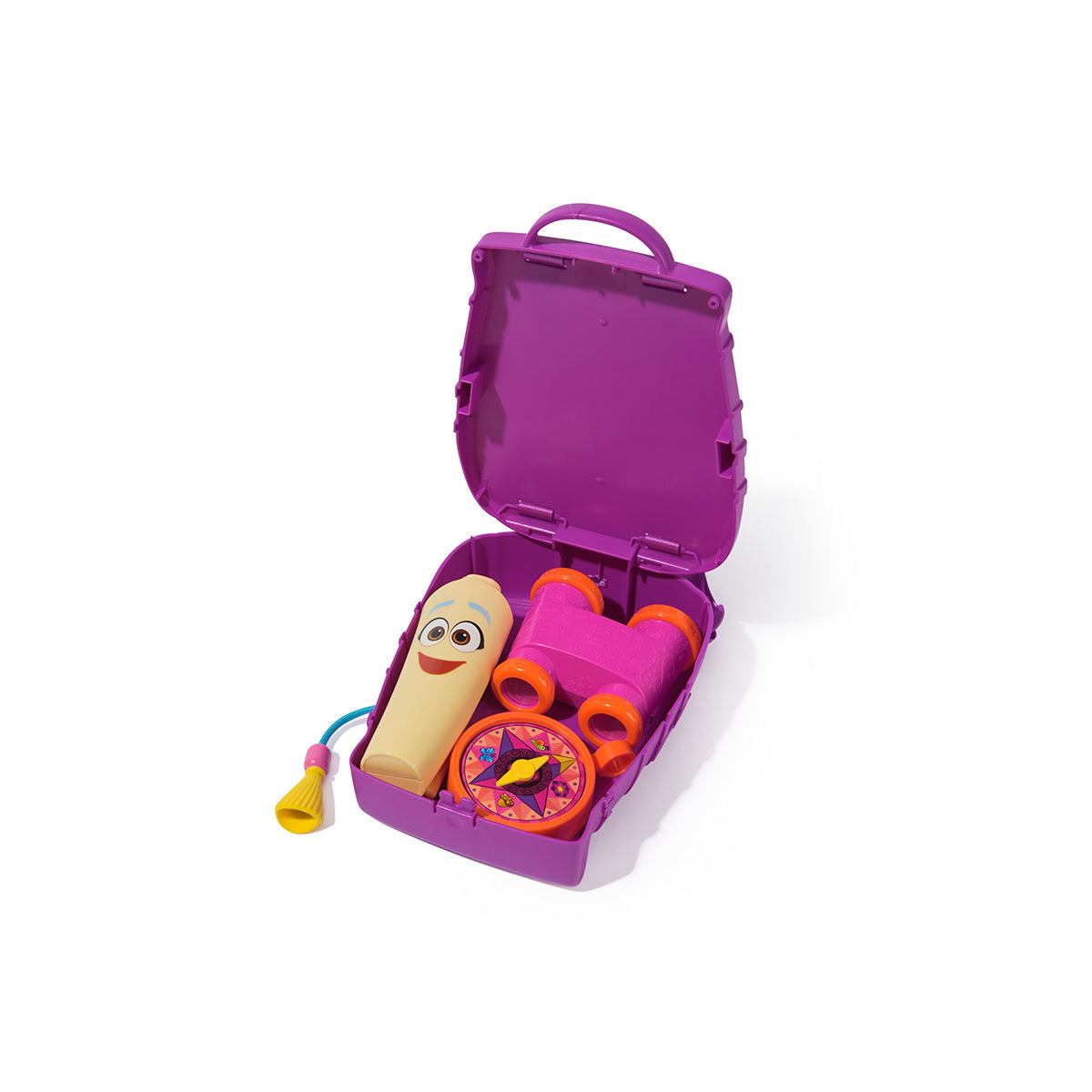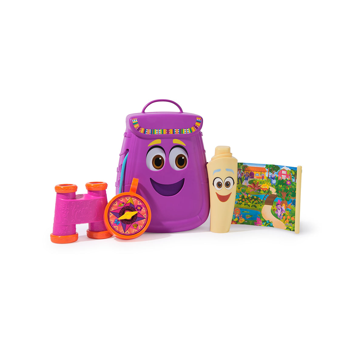 The set also includes a retractable map, binoculars, and a compass, for endless pretend play explorations. The double-sided map extends & retracts, for easy access & stowage. Backpack also opens and closes, for convenient toy storage, and features adjustable straps for on-the-go play.