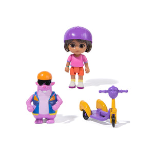 Dive into a world of excitement with the Dora, Zoom & Explore Adventure Pack! This engaging set of preschool toys invites kids to embark on exciting journeys with Dora and her friend Tico. The pack includes 3-inch toy figures of Dora and Tico, each sporting molded-on helmets and movable arms.