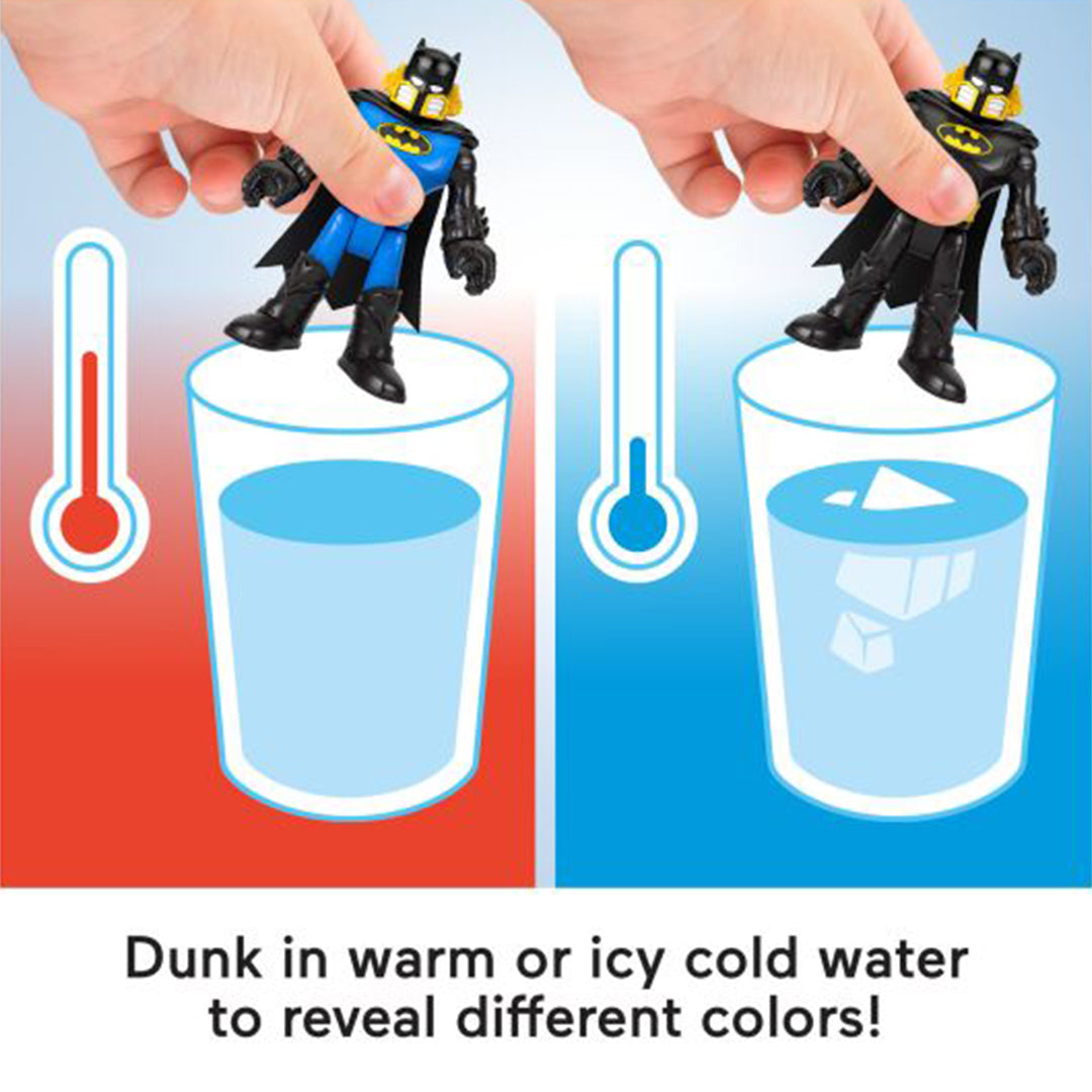 This action-packed Color Changers Batman playset is packed with fun water play, including a dunk tank, swinging pendulum with nose waterfall, and a water-squirting backpack kids can attach to the figures. Switch the water from icy cold to warm (and back again) to see Batman and The Joker change colours as they battle it out for Gotham City.