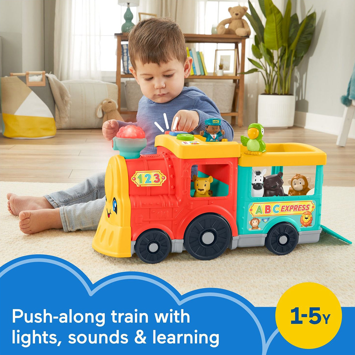 Toddlers can embark on wild railway adventures with the Little People Big ABC Animal Train from Fisher Price. This large push-along toy train comes with 5 Little People figures to ride the rails and features lights, sounds, music and phrases. As little conductors send their exotic passengers chugging around the living room, the Smart Stages learning content introduces the alphabet, counting, colours and more.