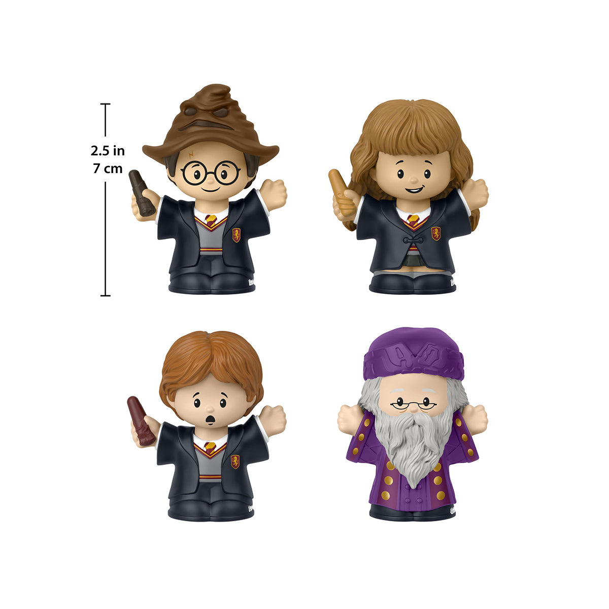 - Includes Harry, Ron, Hermione, and Dumbledore figures