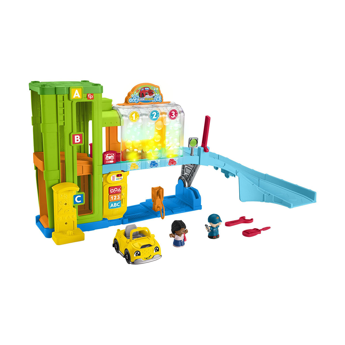 At the Fisher-Price Little People Light-Up Learning Garage playset, toddlers can “fill” up, tune up and “wash” their car before racing along to the next adventure! This interactive car garage playset features multi-colour lights and 3 Smart Stages learning levels of songs, sounds and phrases to enhance your child’s pretend play. Kids can act out fun stories with 2 character figures, 2 mechanic’s tool play pieces, and a push-along toy car with a hood they can open and close.