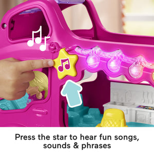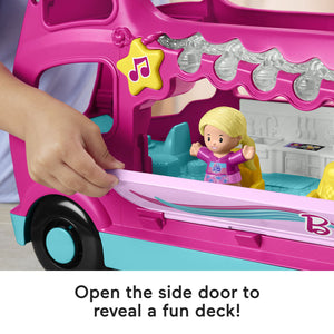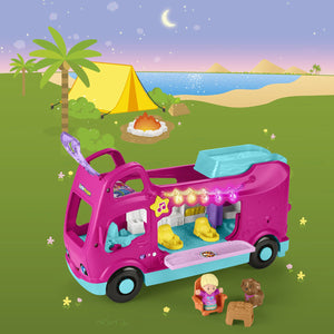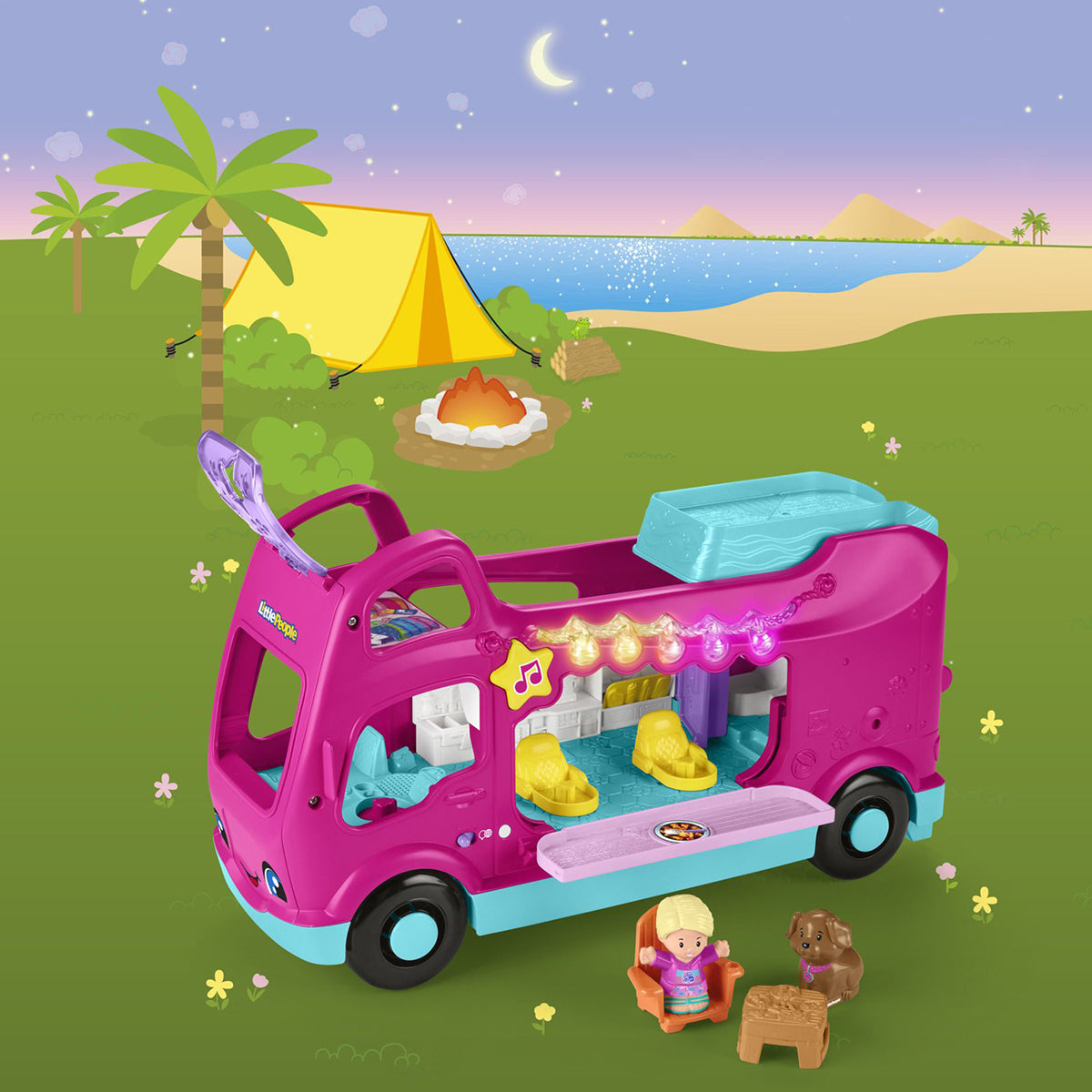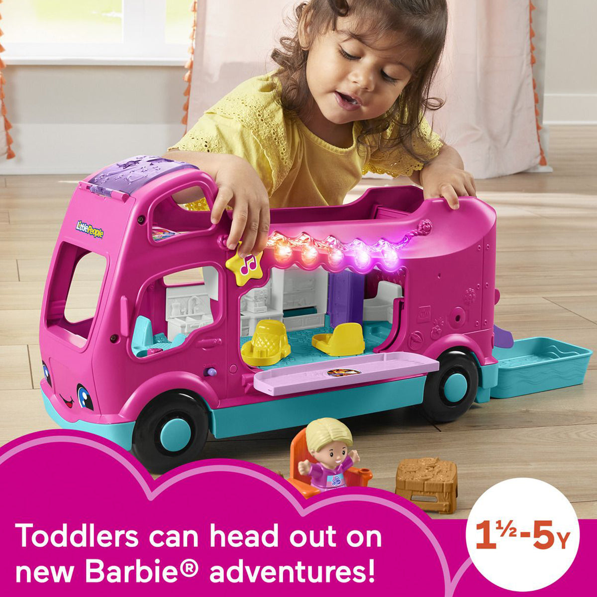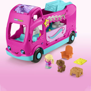 Young Barbie fans can hit the road for new adventures with the adorable Barbie Little Dreamcamper by Little People. This combination push-along camper and toddler playset includes 2 Little People figures and 3 camping-themed play pieces to enhance their storytelling play.