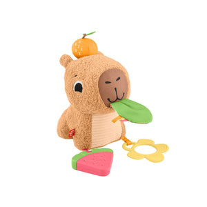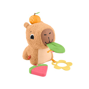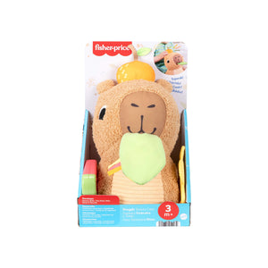 Cute, cuddly, and ready for play, the Snuggly Snacky Capy plush baby toy from Fisher-Price is packed with lots of sensory details for your little one to explore. With bright colours, textured fabrics and fun sounds, the capybara comes with his own “snacks” that are designed to engage your baby’s senses as they play. Sized just right for newborns, this soft, snuggly friend can help provide a sense of comfort and security for your little one at home or when traveling. Colors and decorations may vary.