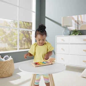 Toddlers will be inspired to explore sounds and tap out tunes on the Wooden Xylophone musical toy from Fisher-Price. Each brightly colored metal key plays a different note and is a fun way to encourage your little one to express their creativity while developing their fine motor skills. Made with wood from Forest Stewardship Council-certified sources (FSC-N004566) and decorated with non-toxic, water-based paints. Colors and decorations may vary.