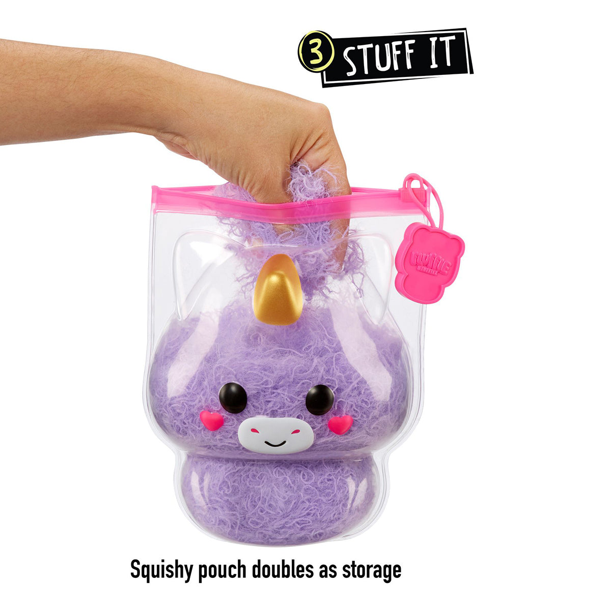 Meet the Fluffie Stuffiez™! This cast of characters is huggable, ultra fluffy, and BIG on personality. Fluffie Stuffiez has 3 ways to play - pull it, reveal it and stuff it! There's a surprise Unicorn character hidden underneath.