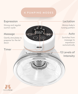 Affordable- The Fraupow Wearable Electric Pump has 4 modes and is loaded with features that ensure it keeps up with or beats other pumps, at less than half the price of the leading competition. The Fraupow Hands-Free Breast Pump fits with the other products in Fraupow's breastfeeding support system. Fraupow believes in helping mums do the hardest job, without breaking the bank.