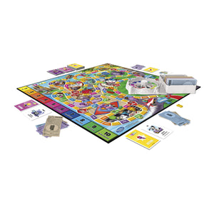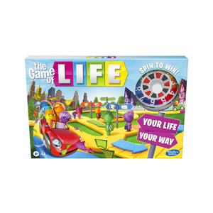 Buckle up for an exciting ride through life's twists and turns. Pop in colourful pegs and spin to move along the gameboard as life unfolds from Start to Retirement. Every Stop! Space is a major life milestone where players spin for their fate or choose their path forward. Decide whether or not to get married, raise a family or retire early. Action cards give players options for how their adventures play out!