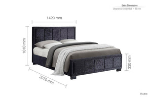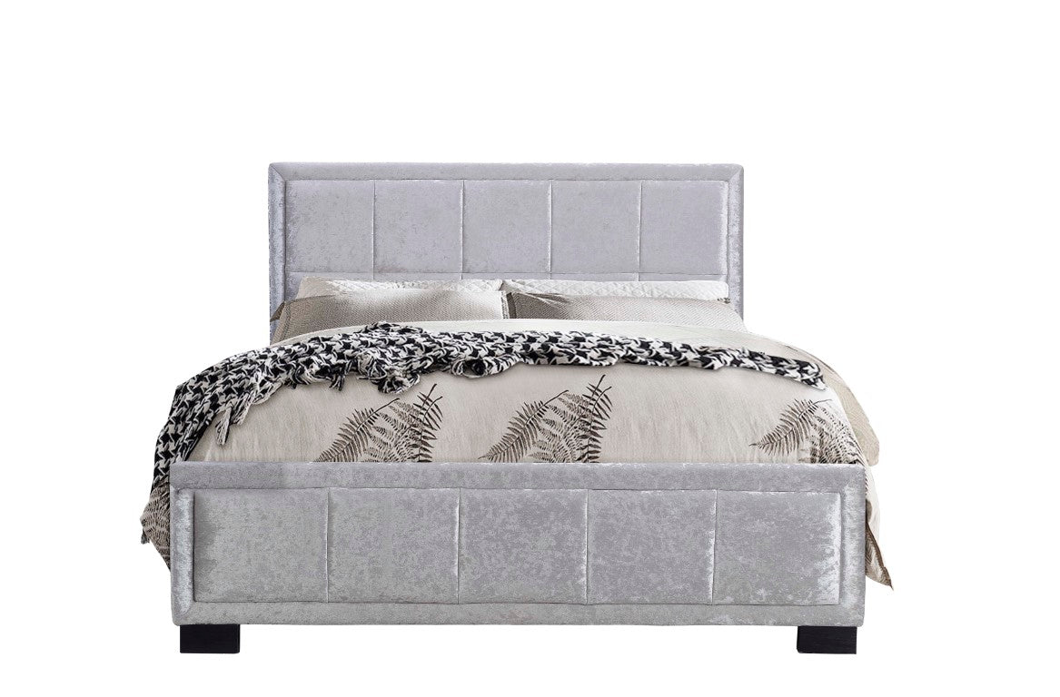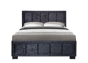 - Available in a steel, black velour or a grey fabric this bed will look stunning in a traditional or contemporary style of bedroom décor