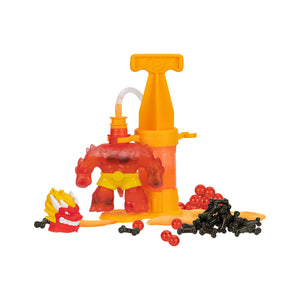 Add water, pump the figure's body full of goo, and watch as Blazagon is brought to life! Remove him from the hero creator, and he's ready for stretchy, squishy action! Blazagon's body can be stretched up to three times its size, so make sure to unleash a STRETCHY attack! Endless adventure awaits! Mix, Fill, and Create with the all-NEW Heroes of Goo Jit Zu Hero Creator. There are two characters to collect, including Blazagon & Thrash!