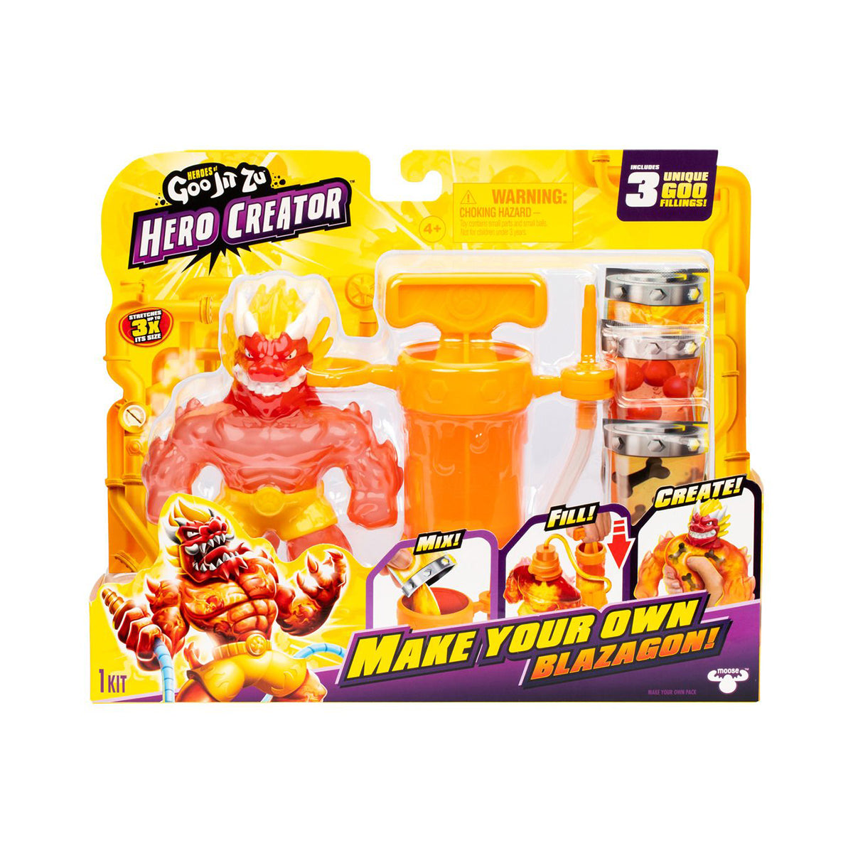 Introducing the NEW Heroes of Goo Jit Zu Hero Creator! For the very FIRST TIME, your child has the power to create their own Blazagon Action Figure! Attach Blazagon onto the special Creator Chamber and fill it with 3 unique fillings!